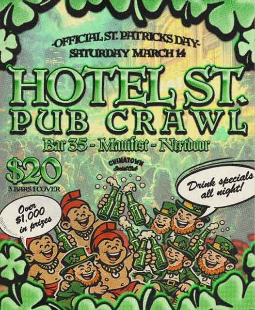 IT’S THE OFFICIAL CHINATOWN SAINT PATRICK’S PUB CRAWL , SATURDAY, MARCH 14TH AT BAR 35, MANIFEST, AND NEXT DOOR.
