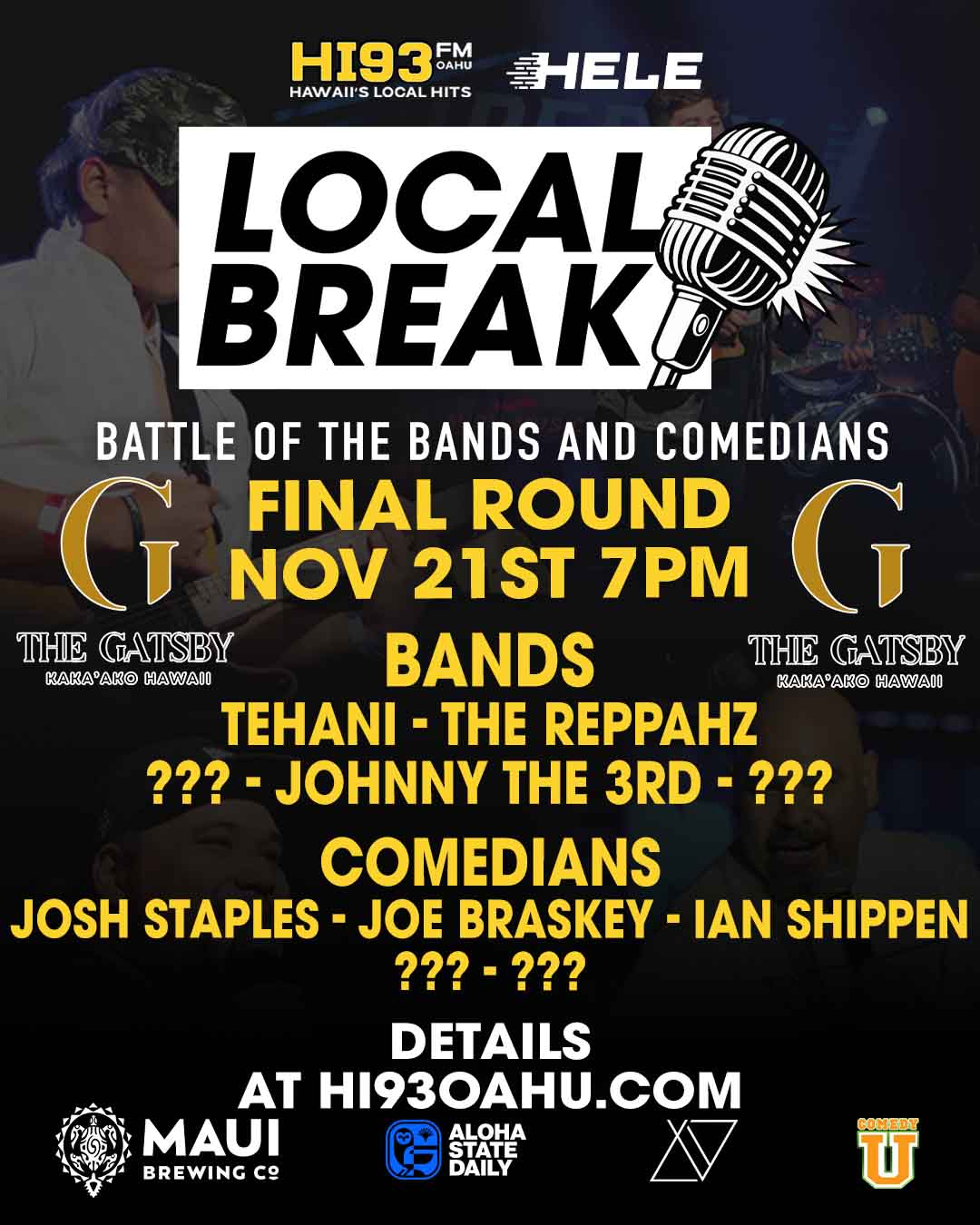 Hi93’s Local Break Finals📍 The Gatsby, Kakaʻako | 🗓️ November 21 | ⏰ 7 PM It all comes down to this! After weeks of epic performances across Oʻahu, the Hi93 Local Break Finals are here — where the island’s top 5 bands and 5 comedians go head-to-head for the crown! Hosted by the HiGuys – […]
